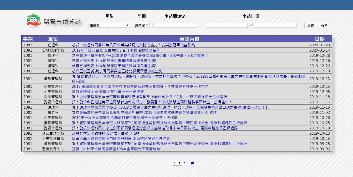 康寧大學資訊管理科著重學生之實作能力訓練,並透過校外產學合作案、校內合作案、實務專題等機會,讓學生參與實際系統的開發,累系實務經驗及專業能力。下表為近年資訊管科理學生所參與的軟體系統開發專案,均為校內外實際使用之系統。