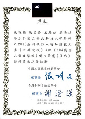 中國工業職業教育學會主辦 亞洲智慧型機器人大賽 歷年參賽成果