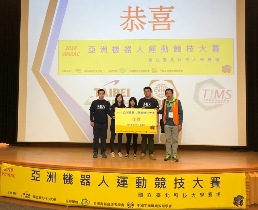 賀! 資訊管理科高浩棋、朱雅筠、王駿銘、陳奕伶等4位同學參加2018亞洲機器人運動競技大賽,獲得佳作