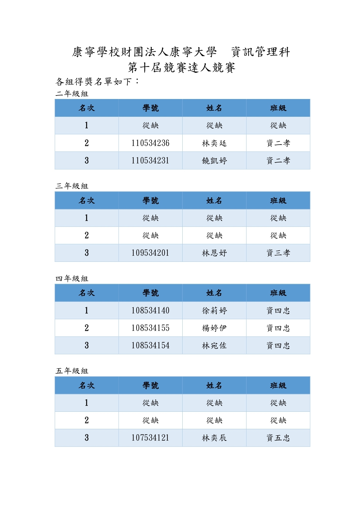 資訊管理科,第十屆競賽達人競賽得獎名單出來囉🎉