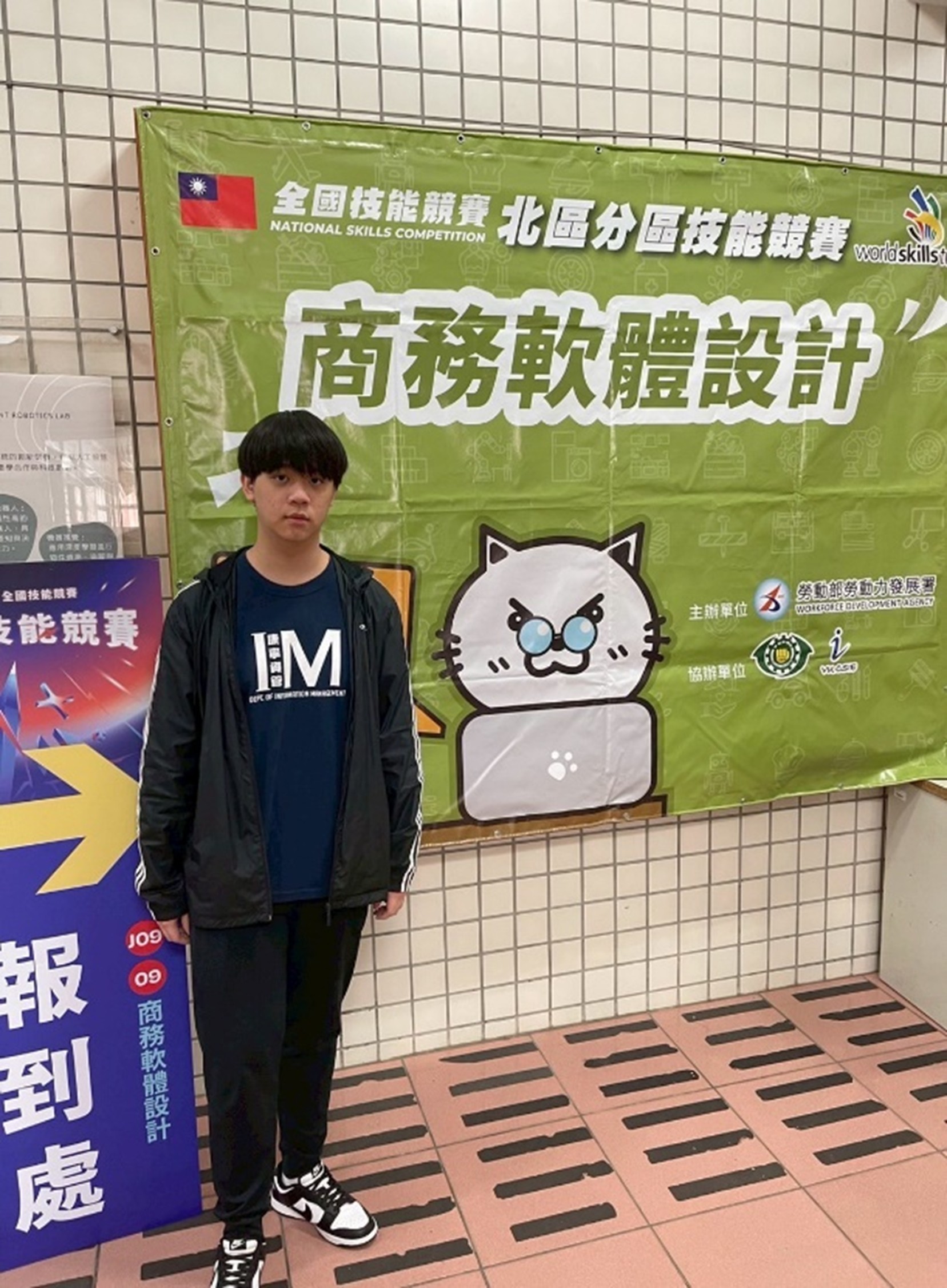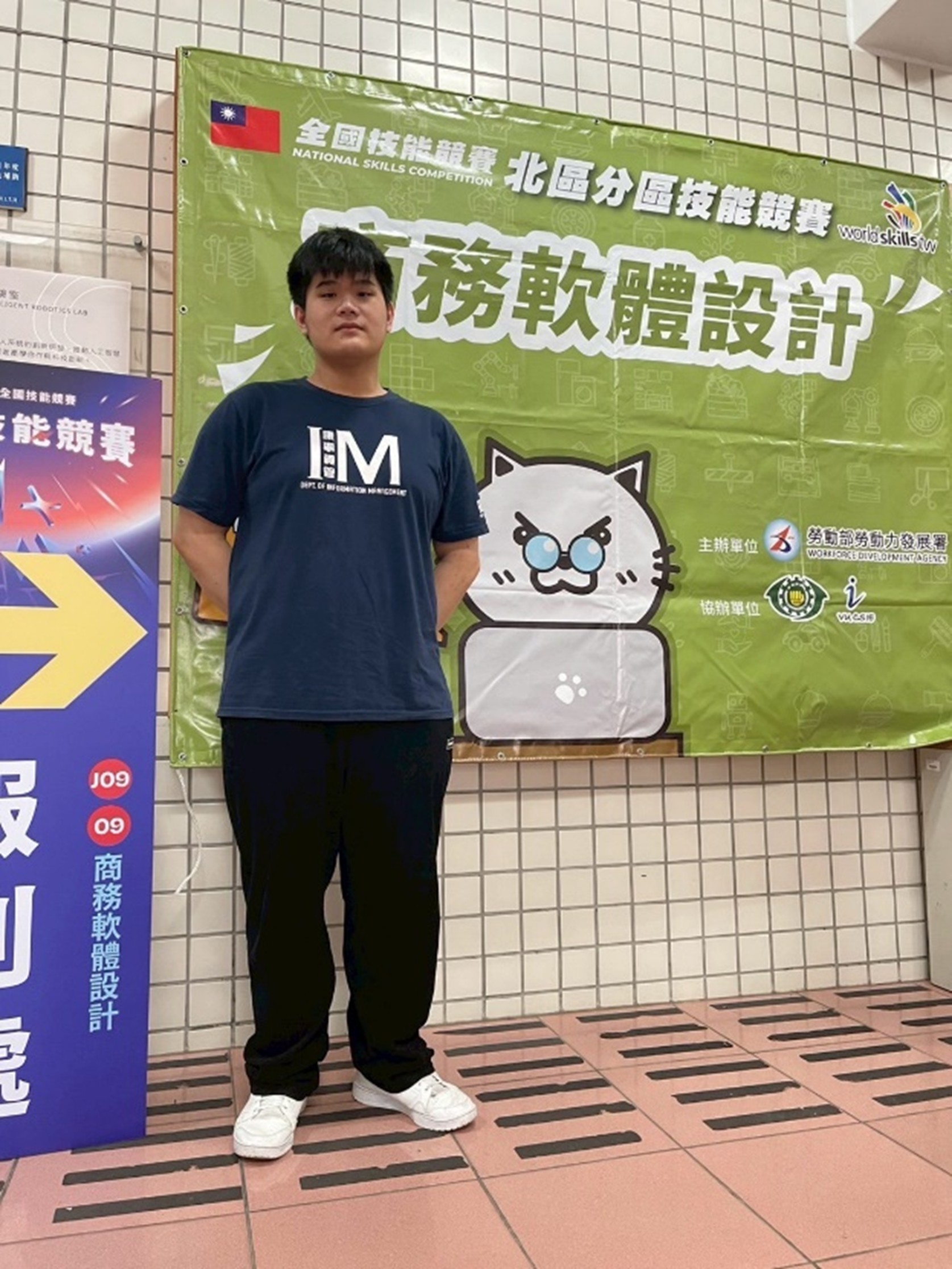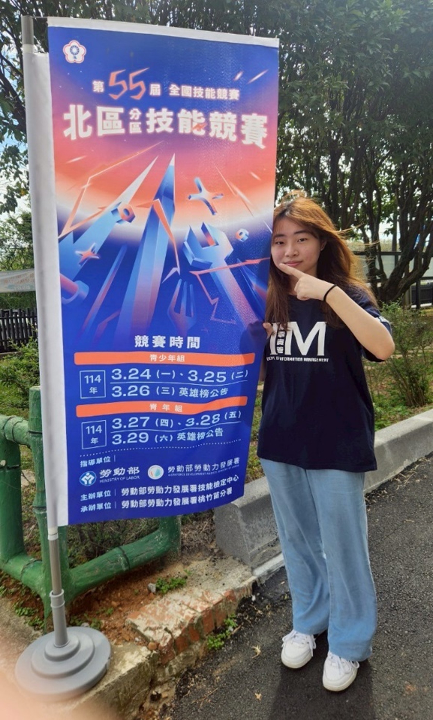 本校資訊管理科學生參加2025年勞動部所舉辦的「第55屆全國技能競賽-北區分區技能競賽」,在「青年組-網頁技術職類」唐佳臻與「青年組-商務軟體設計職類」饒凱婷、陳冠齊、劉旭翔分別榮獲個人佳作成績。